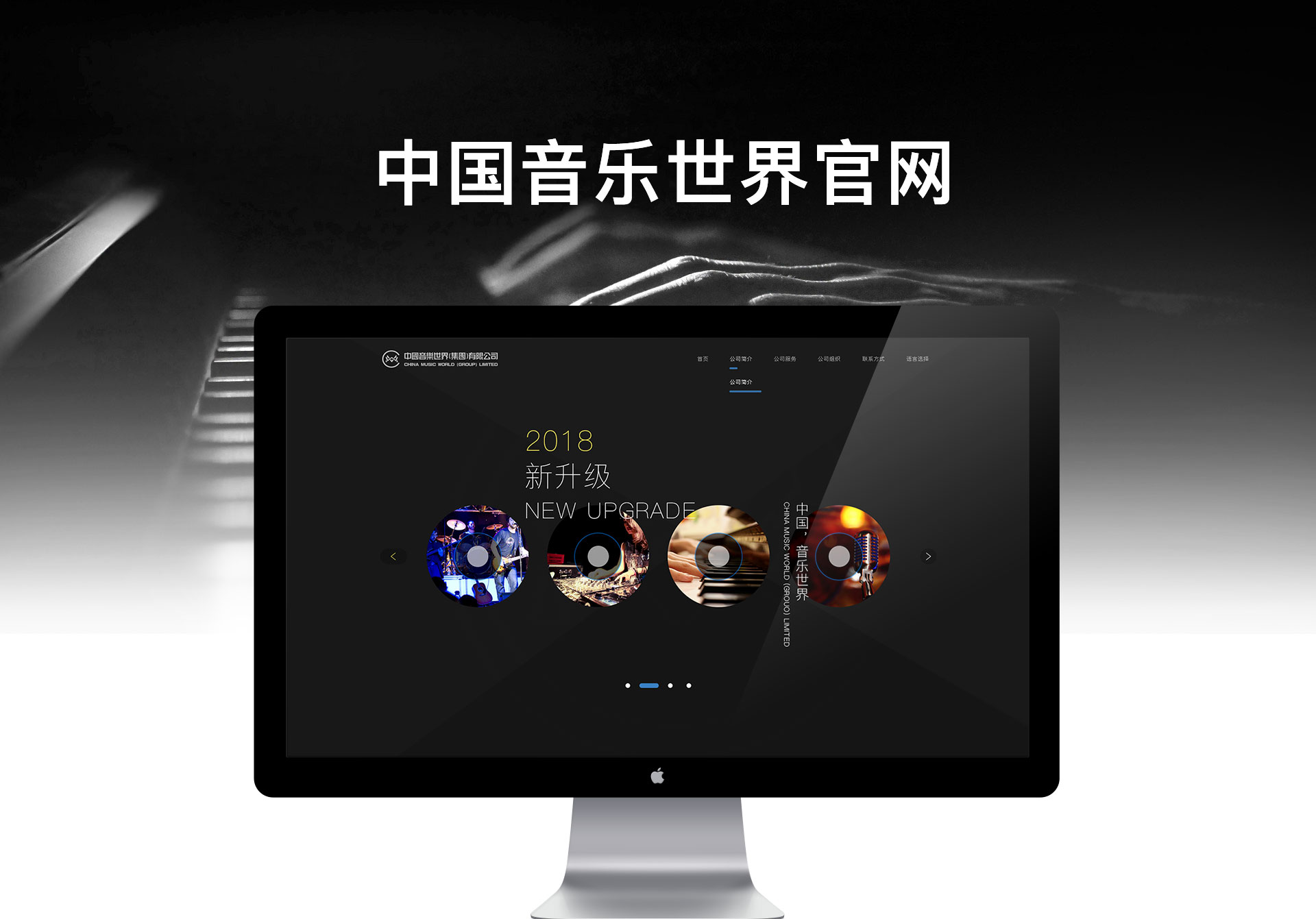 華人音樂世界(北京)文化傳媒有限公司官網要求突出業務內容和品牌優勢、設計風格獨特、顏色搭配簡約具有藝術感。